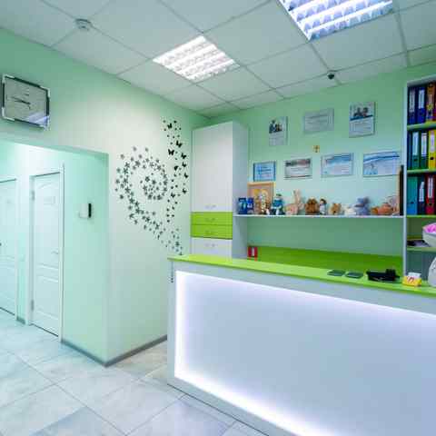 В стоматологии есть комната для сопровождающих с Wi-Fi, телевизором и журналами.